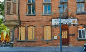 die Gaststätte Adler durch einen Sprengstoffanschlag verwüstet wurde.